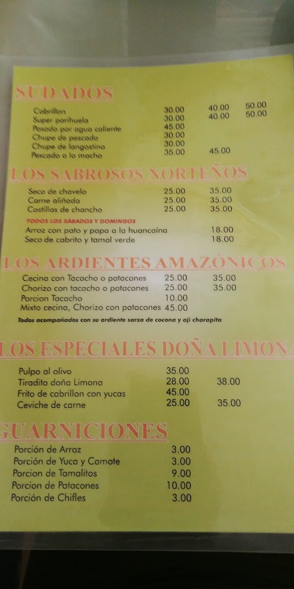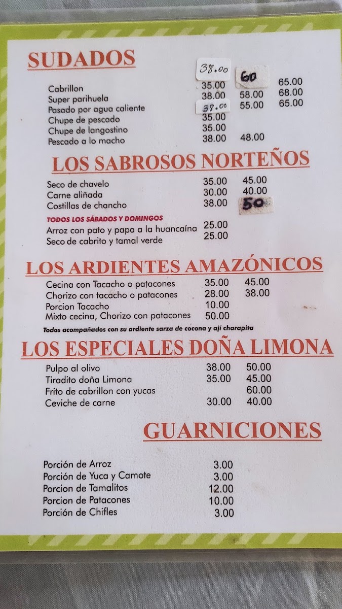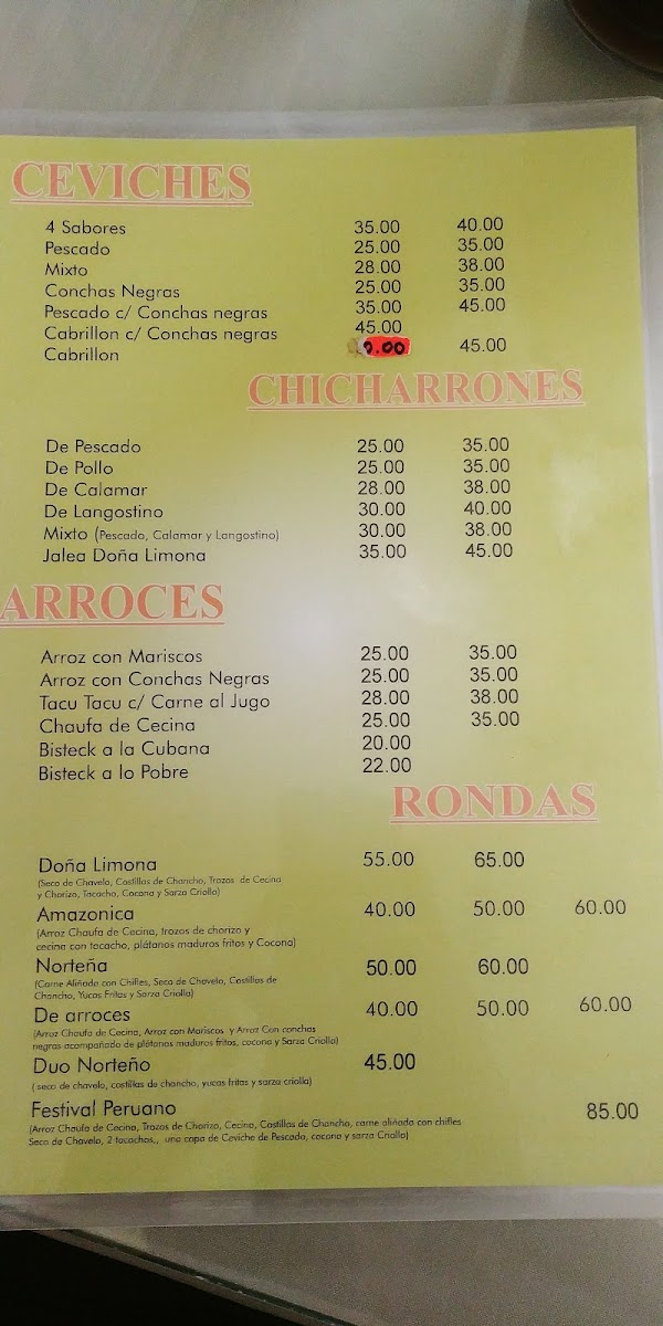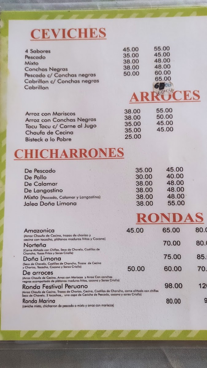 The menu at Doña Limona in Piura offers a rich selection of traditional Peruvian dishes, each with its own unique twist. For anyone looking to explore authentic local flavors, this restaurant is a must-visit. Among its standout offerings, the Ceviche de Conchas Negras is a true highlight. Known for its fresh, tender black clams, this dish is both delicate and full of flavor, making it an absolute recommendation for seafood lovers. Priced at 100 soles, it is worth every penny for the quality and taste it delivers.